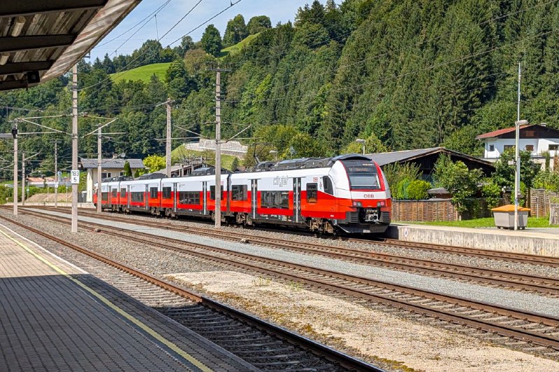 Beim dm noch ein paar Lebensmittel gekauft. Für den Nachmittag stand der Schwarzsee auf dem Programm. Dort hätte ich natürlich mit dem Auto hinfahren können, aber in der Gästekarte sind hier alle Busse und Bahnen inbegriffen, also wollte ich auch mal den ÖBB Regionalverkehr testen. Etwas knapp bin ich vom Campingplatz losgelaufen – Google Maps sagt 26 Min bis zum Bahnhof, ich hatte 21 Min und habe (ohne joggen) 18 Min gebraucht. Dann hatte der Zug natürlich 5 Min Verspätung – aller Stress umsonst.