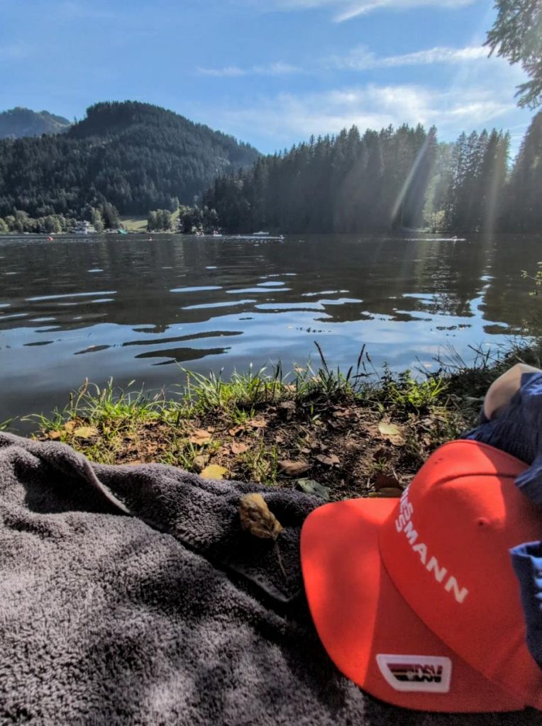 Am Schwarzsee angekommen stellte ich fest, dass das „Seebad“ so ein richtiges Freibad nur mit See statt Schwimmbecken ist. Bäh. Ich zahl doch keinen Eintritt um in einem See zu Baden. Also beschloss ich um den See zu laufen, irgendwo wird schon auch eine normale Badewiese sein. Und siehe da, auf der gegenüberliegenden Seite war ein weiterer Badebereich.