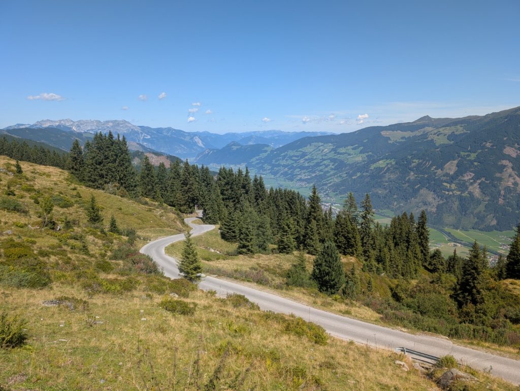Warmup des Tages somit erledigt. Oben ein paar Fotos gemacht, anschließend gings wieder Bergab ins Zillertal. Bei der Planung habe ich schon gesehen, dass sich mein Arbeitskollege an einer Stelle verfahren hatte und habe den Zacken aus der Planung extra raus geplant… Ich weiß jetzt warum er sich verfahren hat, denn ich hab den Abzweig auch verpasst. Glücklicherweise gibt’s eine Parallelstraße etwas weiter unten am Hang. Kurze Zeit später kommen die Routen wieder zusammen.