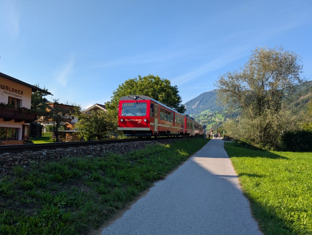Nach langsamen Rollen durch Mayrhofen ging es dann flott das Zillertal hinunter. Diesmal ohne Umweg über die Höhenstraße 🙃. Auch hatte ich das Vergnügen die Schmalspurbahn in Fahrt zu sehen. Zillertal durchschnittlich 29km/h. Gut geplant 😀