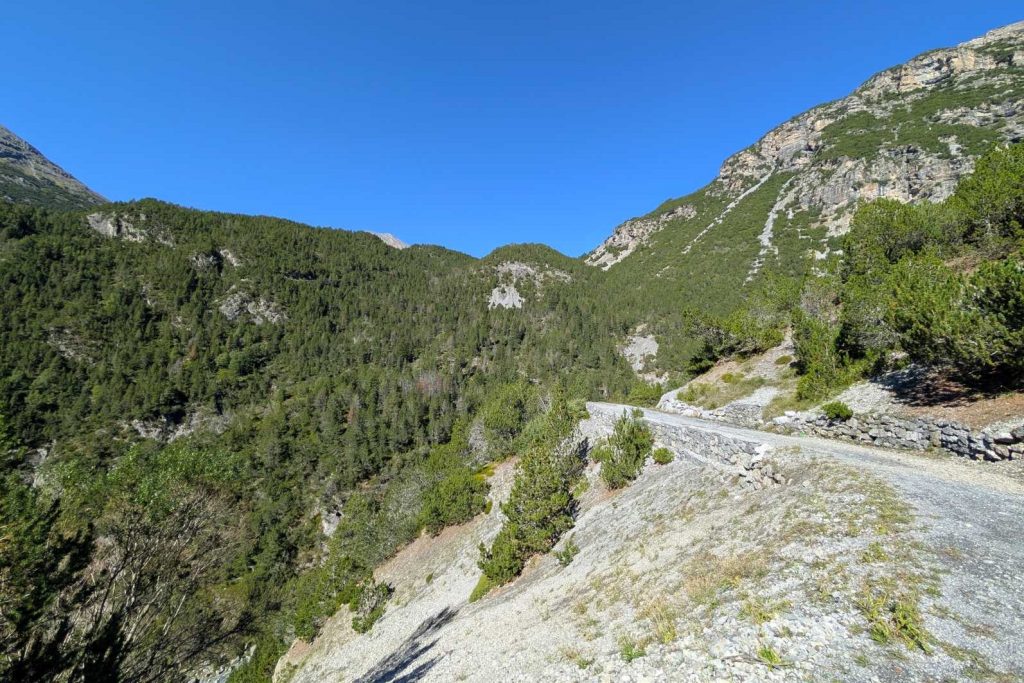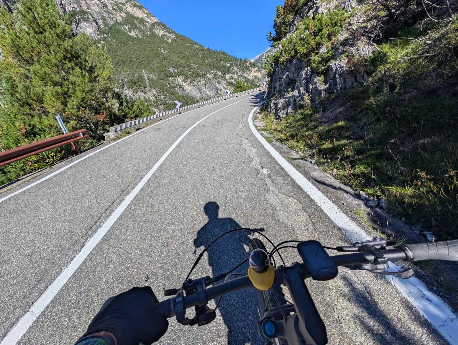 Schon der Anfang war daher super. Es ging durch den Wald, traumhaft zu fahren, teils aber schon recht steil bergauf. Ich traf zwei E-Biker, welche mich einholten. Er „gratulierte“ mir, dass ich hier ohne Motor hoch fahre ;D Ich frage, ob sie auch zum Stelvio hoch fahren. Er war verwundet. Sie fahren nur bis zum Lago di Cancano, er wüsste nicht, dass man hier auch auf den Stelvio kommt.
